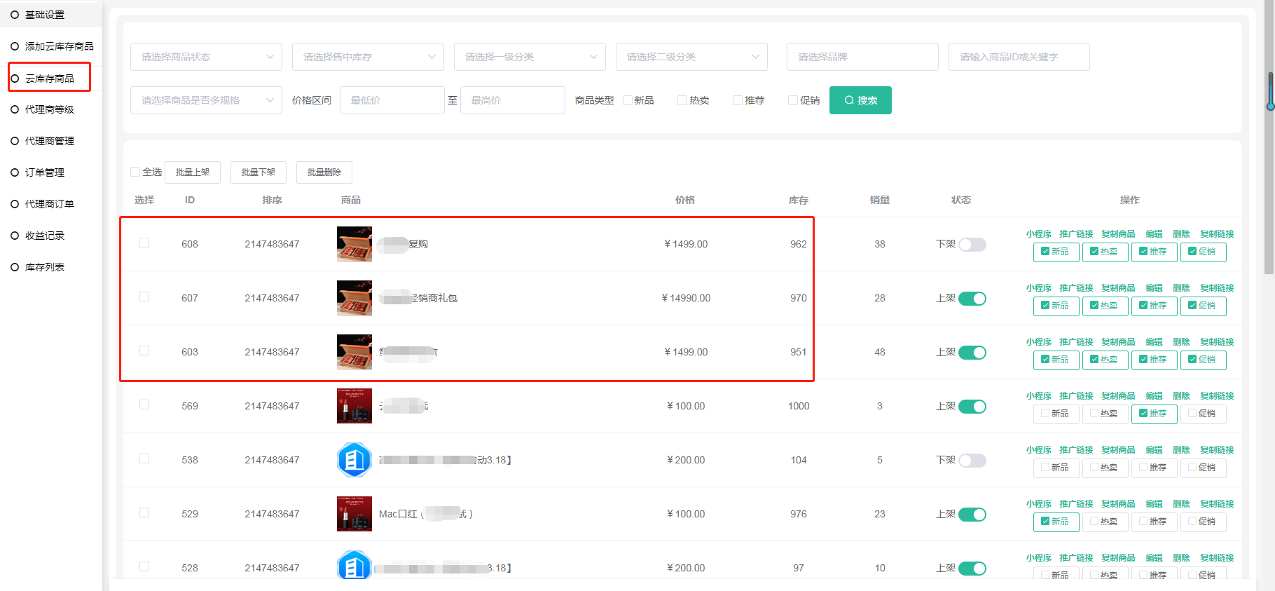 上方添加了云库存的商品,商品会在云库存商品中显示