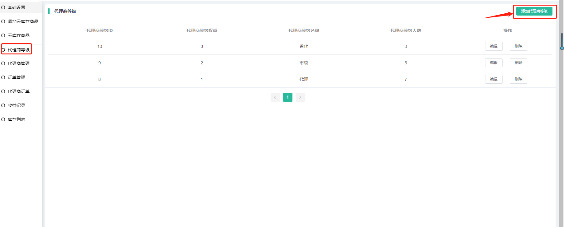 根据代理商等级可设置不同的折扣优惠进货,等级越高进货成本越低